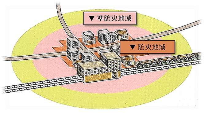 都市計画法に基づいて市街地や宅地などが➀「防火地域」や② 準防火地域に指定され、主に駅前や建物が密集している場所などが対象です。