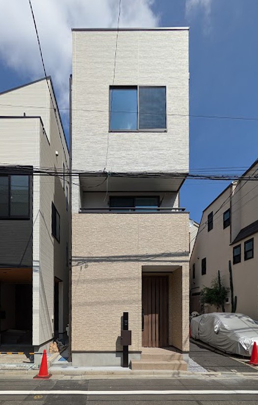 • 北側前面道路6m幅員に面して建つ3階建て住宅
